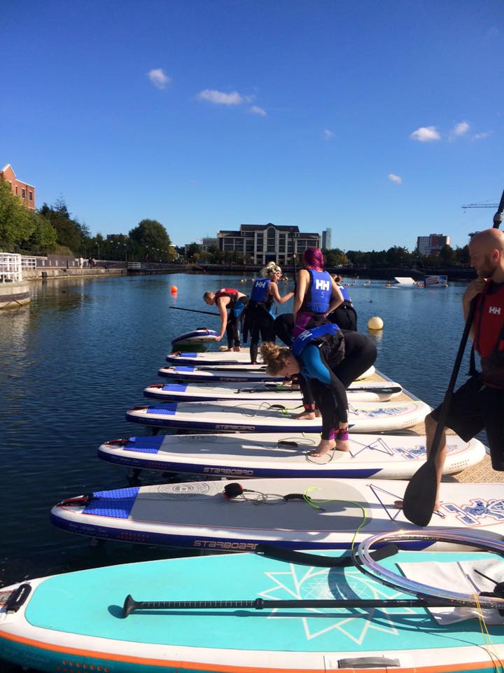I did wonder how the whole thing would be done but it was beautify organised and well thought out. We kitted up and grabbed a paddle and a board, off we went. We paddled to a location in Salford Quays where rope lines were already there for us to clip our boards to so we weren’t floating around the lock.