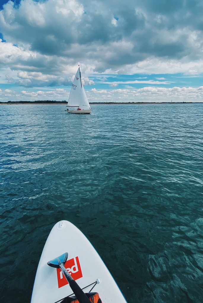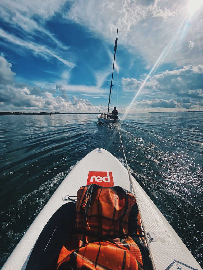 Back in the early summer of 2021 I was trying to find as many ways as possible to get out on the water. One weekend Alex wanted to go sailing but I wanted to go paddleboarding. The wind speed was around 7knots from the South West. This was perfect for both sports. We decided to have a micro adventure together. We grabbed the chart for the Solent and planned a route. We decided, due to the South Westerly wind and the rising tide – we could both sail and paddle to Beaulieu. So we took the two crafts – Alex on his Wayfarer dinghy and myself on my paddleboard.