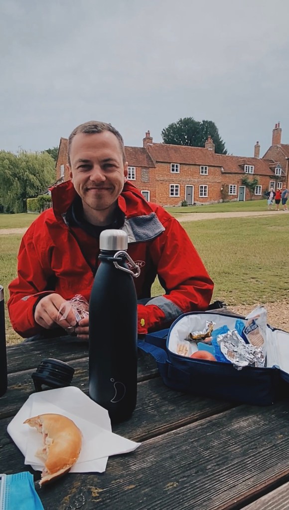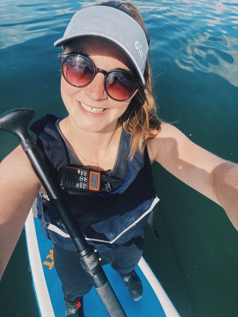 Alex performed his first rescue by getting as to close to me as he could. I then paddled out against the conditions and somehow managed to get from the paddleboard into the boat without falling in. It all felt very dramatic in the moment! We quickly realised we were dragging a 11 ft long inflatable board. So I set to, deflating the board whilst Alex safely sailed us away from the spit. Once I’d finished wrestling with the board we got the motor on and headed up Beaulieu River. I was shattered and so relieved to get to Bucklers Hard. A well deserved lunch break and ice cream was in order.
