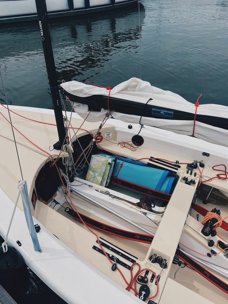 The plan was to deflate my board at Bucklers Hard and we’d sail back. So, after that point, we were back on track. I managed to roll the paddleboard up neatly, securing it in the boat with bungie ties and we were ready to go again.