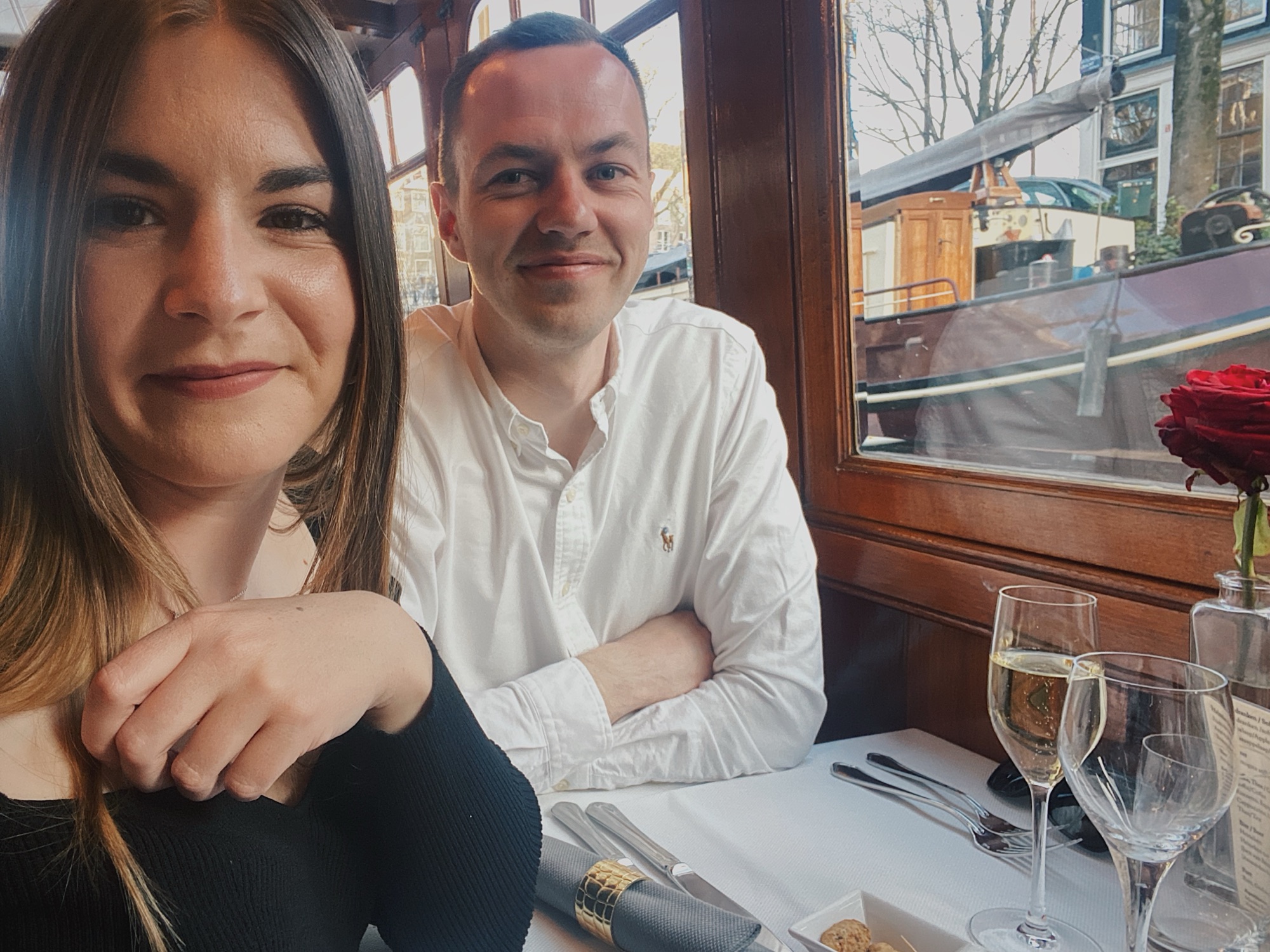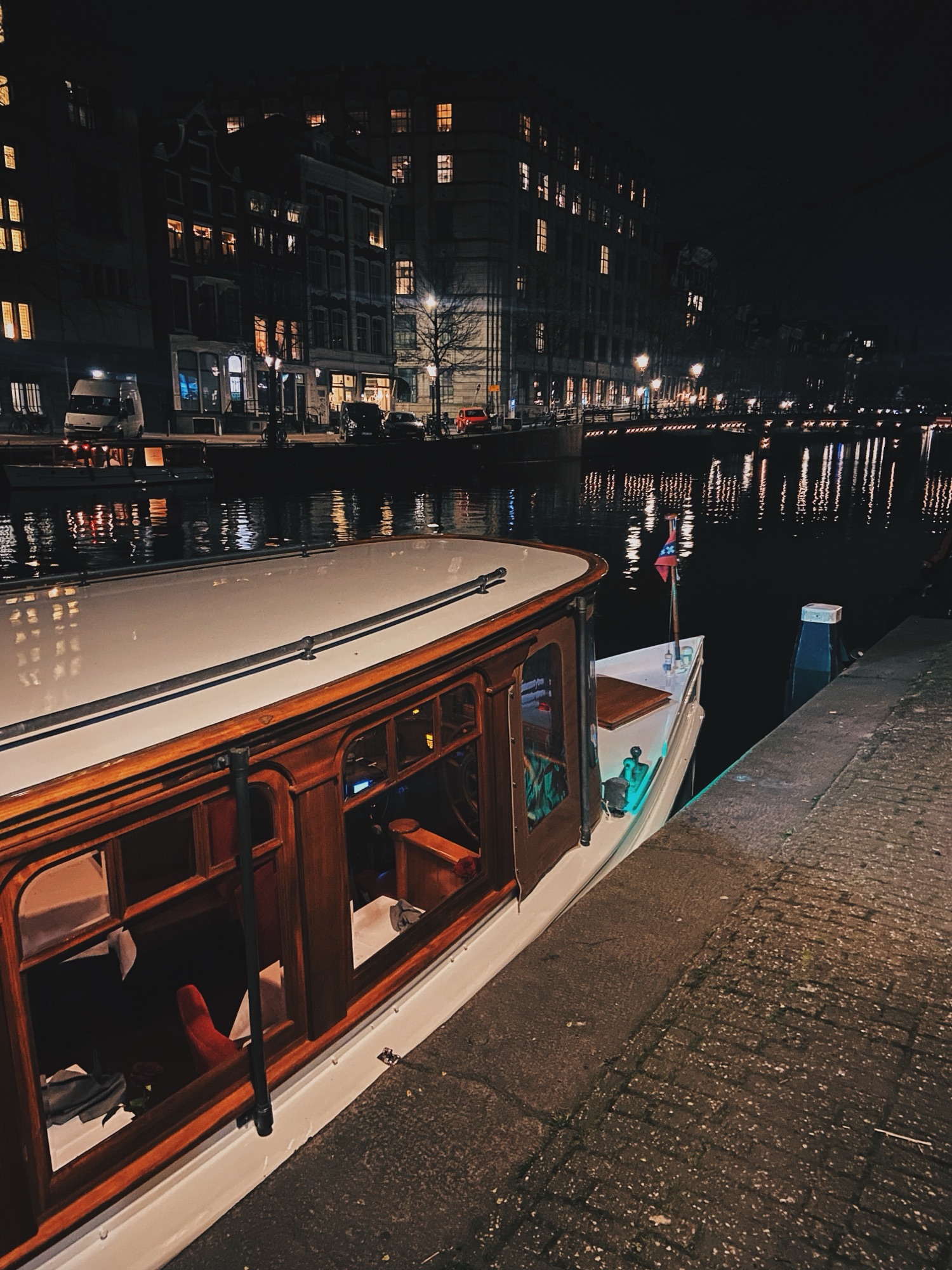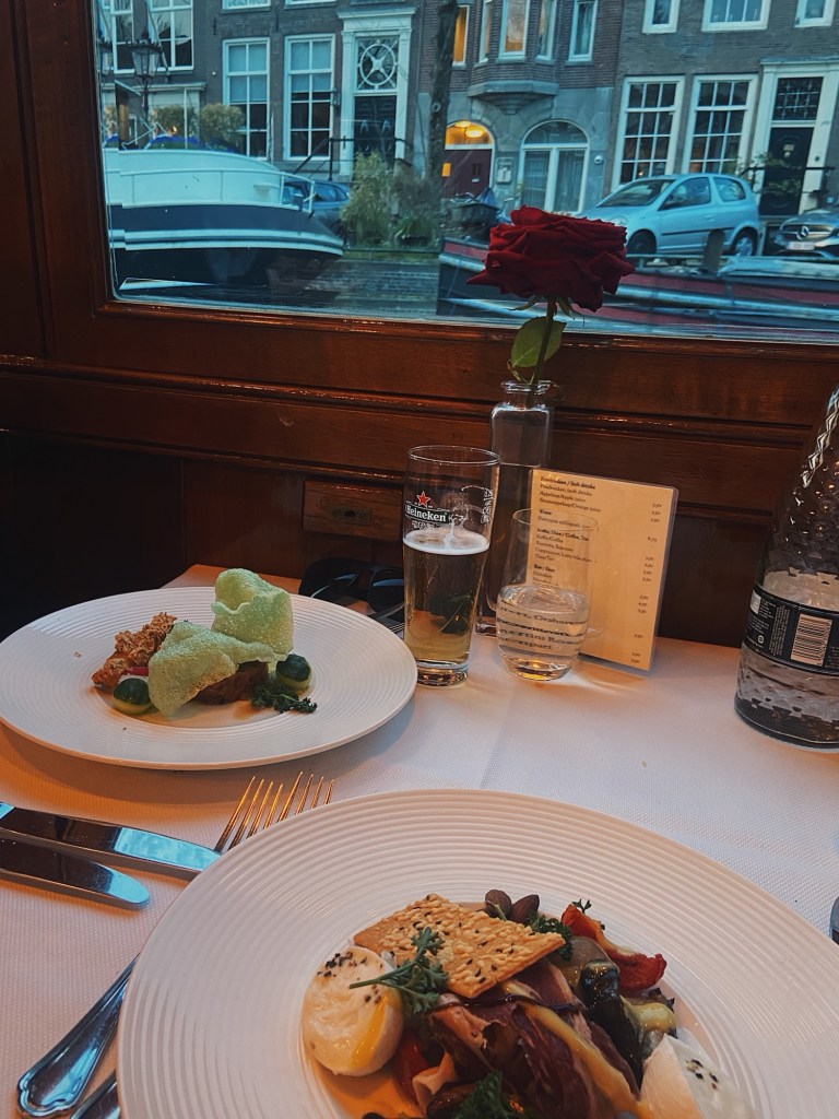 That evening was a complete surprise. Alex told me to bring something nice to wear and we’d be heading into Amsterdam for the evening. He had booked a dinner cruise on a classic riverboat with Jewel Cruises. This was such a unique experience. We sailed up and down different canals, seeing Amsterdam from a totally different perspective. When the sun set it was even more stunning – all the fairy lights and all the bridges.