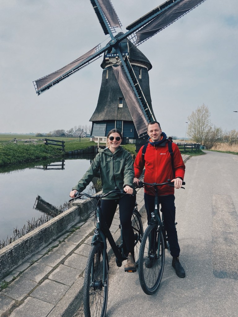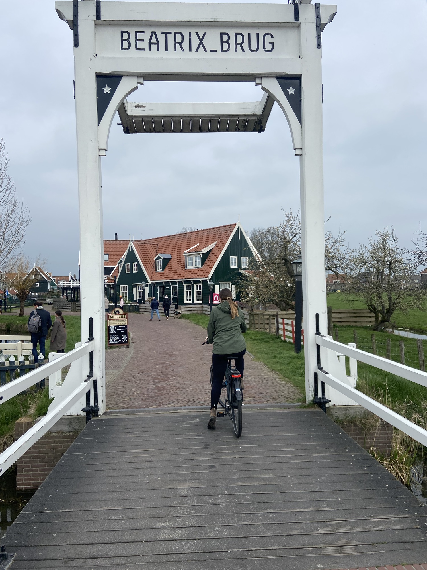 I woke up to a birthday cake delivery, cards and presents Alex brought from home. I always like to do something fun with a plan on my birthday and being away was no exception. We rented some bikes from the hotel and headed out on an all day bike ride. Our route took us north, through local villages and countryside. We cycled from Broek in Waterland to Marken, a small village in north holland. Grabbing a coffee, we then waited for the ferry. We pushed our bikes onto the ferry and headed to Volendam. We made it a circular route by cycling past the Katwoude Windmill down to Monnickendam. We then had lunch down by the waterfront.
