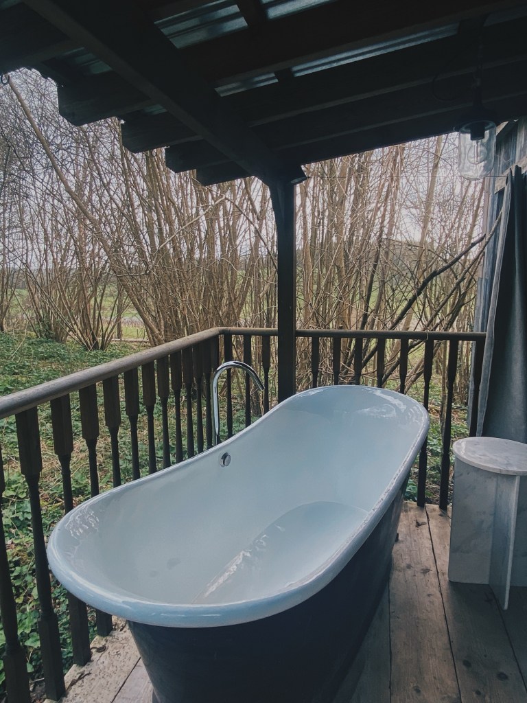 There was an outdoor bath and shower which was very private with nothing overlooking us. There was a log burner, full kitchen and very comfy king bed. The decor was rustic, reclaimed but yet very premium. This wasn’t glamping, it was home from home but in the trees.
