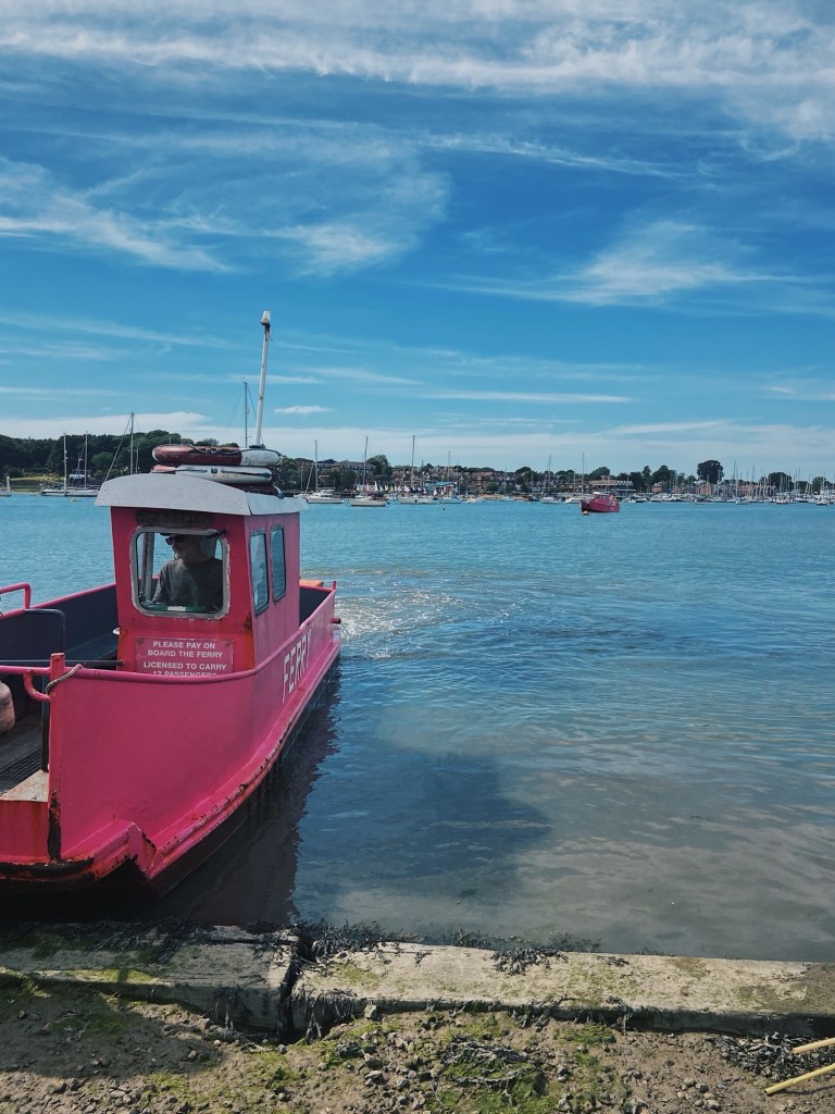 Between Lee on Solent and Southampton, is crossing the River Hamble. Alex gave himself a goal of getting the Warsash and having a well deserved rest and drink at the pub there. We sat down, relaxed and I kept studying the map. Due to the daylight hours, this felt earlier than it was. It was 4pm. Alex suddenly realised that the last ferry across the river was 4.30pm. So much for resting! We jumped up, tapped the card and legged it to the little pink ferry.