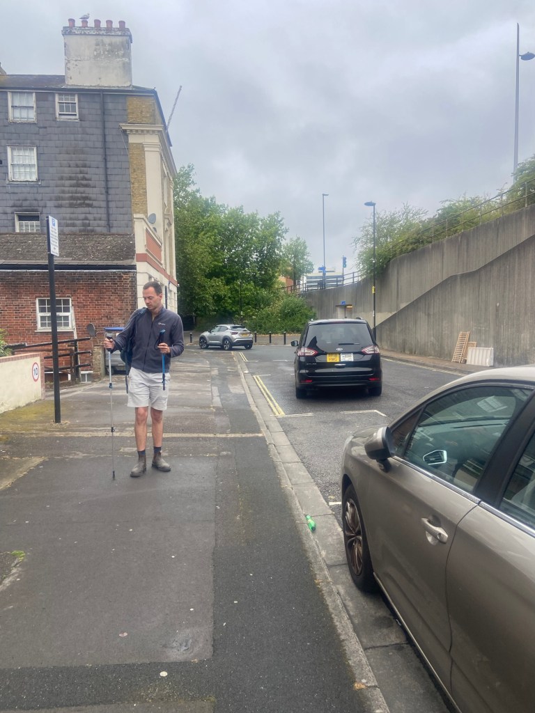 It was getting later and later. We got to the Itchen Bridge with Southampton city centre on the other side – within touching distance. Alex had a problem with his ankle and was using my walking poles, almost as crutches at this point. It was 7.30pm at this point. 1 mile to go. It was clear Alex wasn’t going to make it to the hotel and be able to get any dinner until 9pm.
