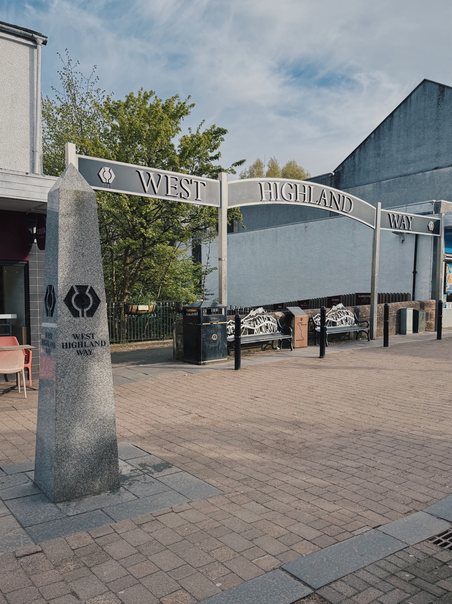 The official start is an odd and grand little set-up, right on Milngavie High Street, nestled between a Costa and a Greggs. Not quite the wilderness I’d imagined. The path out of town felt more like a local dog walk – paved, leafy, and gently leading you away from civilisation.