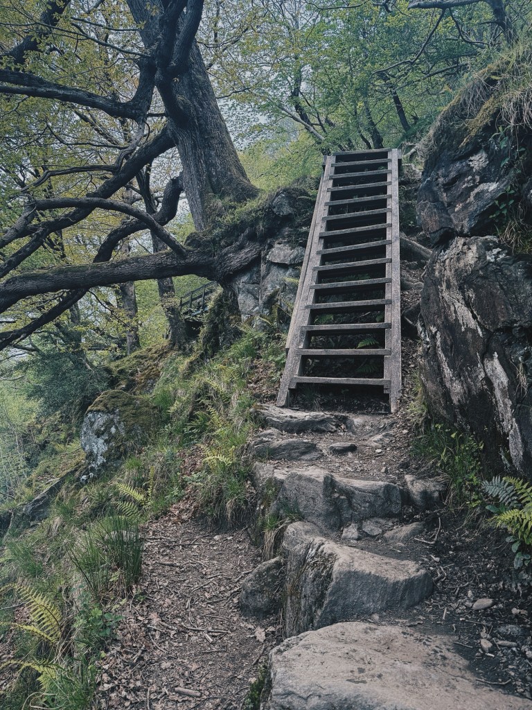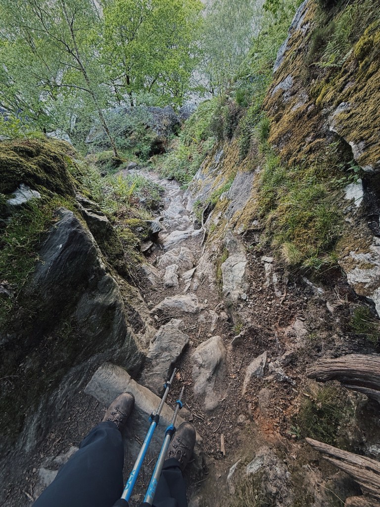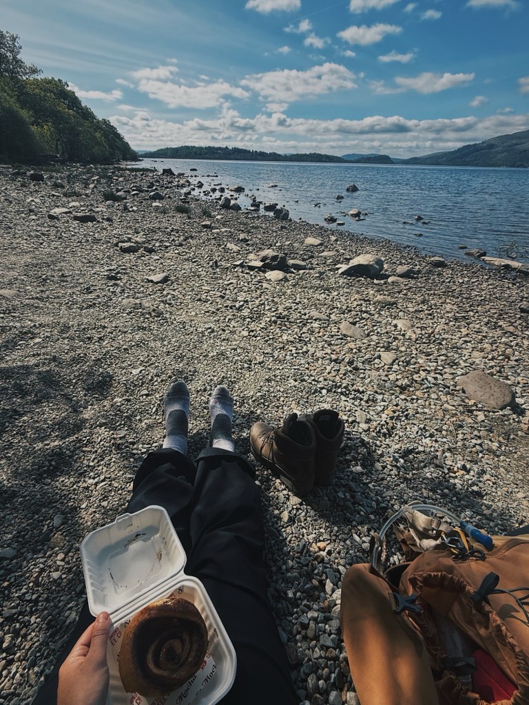 The descent, however, was a different story. Harsh steps, jarring my tired legs, and filled with cheerful walkers who’d just started their jaunt. I was relieved to finally reach Balmaha – and also unexpectedly nostalgic. I’d been here before, and it was lovely to feel a sense of familiarity. I celebrated with an ice cream by the loch, then realised my bunkhouse was half a mile up the road, off the route. Classic.