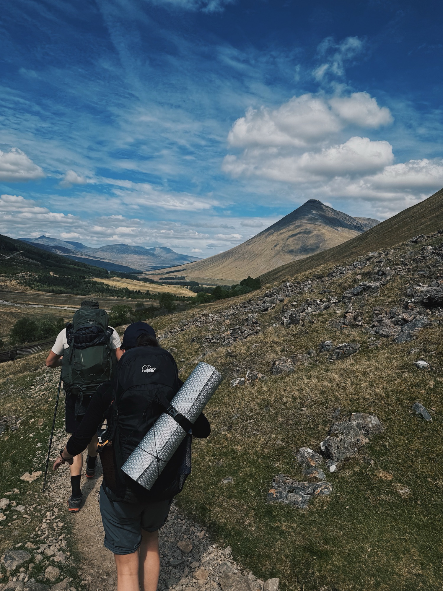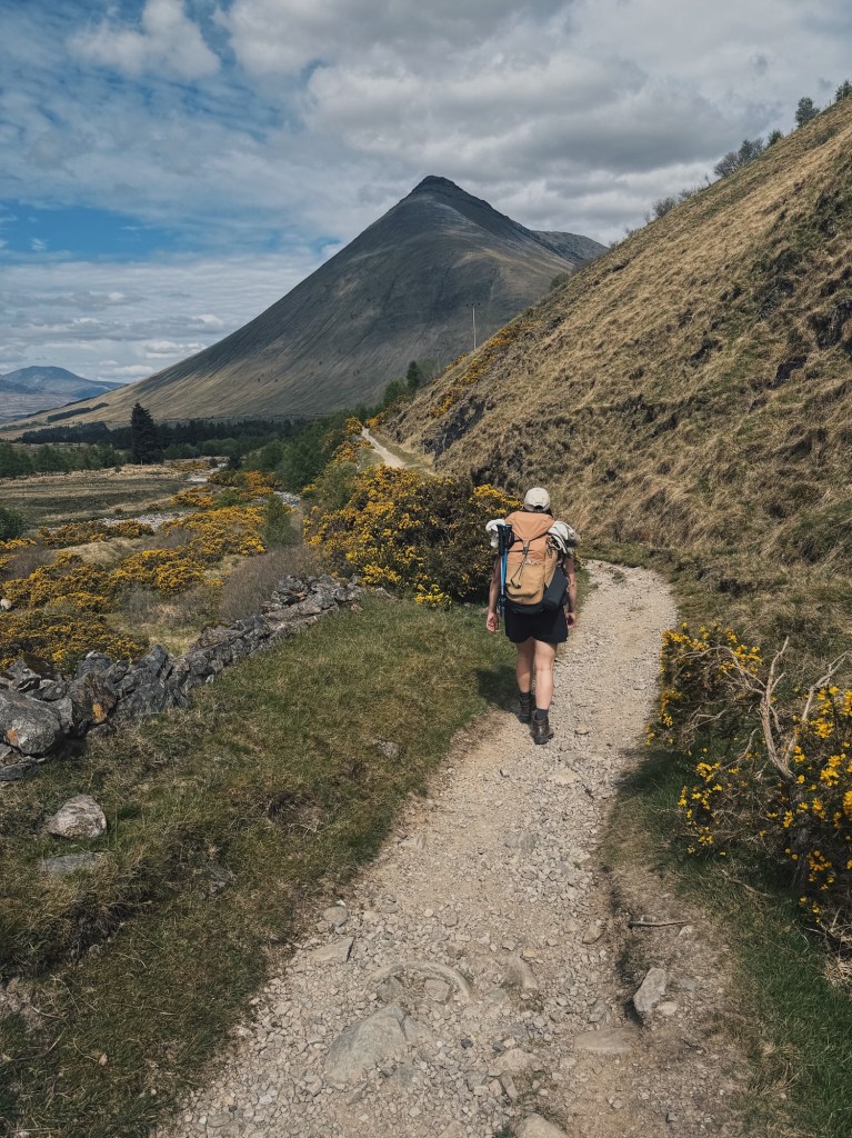 This next stretch felt quieter. Most people seemed to stop at Kingshouse, and with the bikes finally behind us, it was just the sound of our voices and our feet on the trail. We sang as we walked the empty military road through the valley.