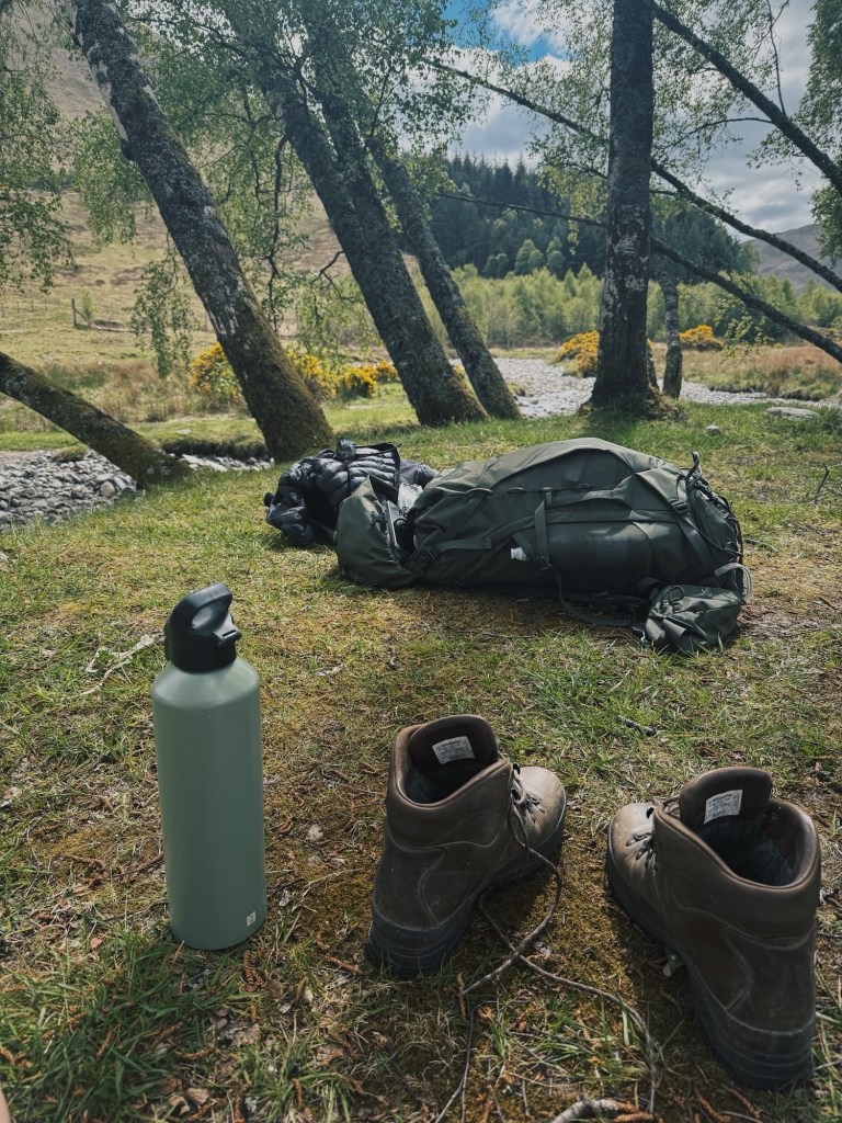 Eventually, the loch came to an end. I sat for a snack and took in one last view before standing up and, quite genuinely, giving it a wave goodbye. From there, the landscape opened out into moorland, with gentle rolling hills stretching ahead. It felt lighter somehow – both literally and mentally. I reached the Beinglas campsite just in time for lunch and a much-needed break.
