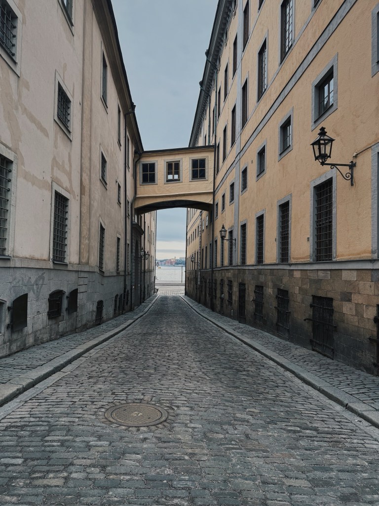 From there, we wandered through Gamla Stan, Stockholm’s old town. The narrow cobbled streets, crooked buildings and warm lights glowing from café windows made it feel almost storybook-like, especially in the winter light.