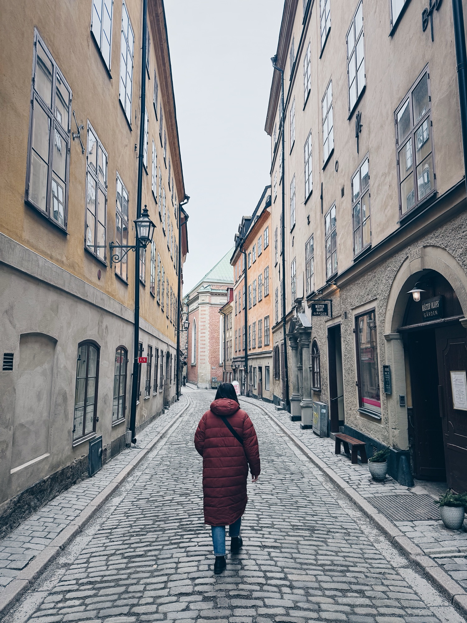 From there, we wandered through Gamla Stan, Stockholm’s old town. The narrow cobbled streets, crooked buildings and warm lights glowing from café windows made it feel almost storybook-like, especially in the winter light.
